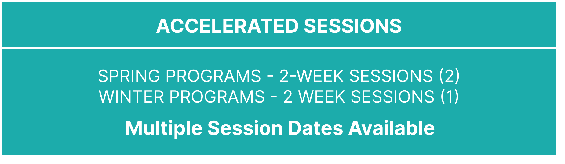 Each of our sessions are 7-weeks, with 1-optional week makeup date at the end of the session.